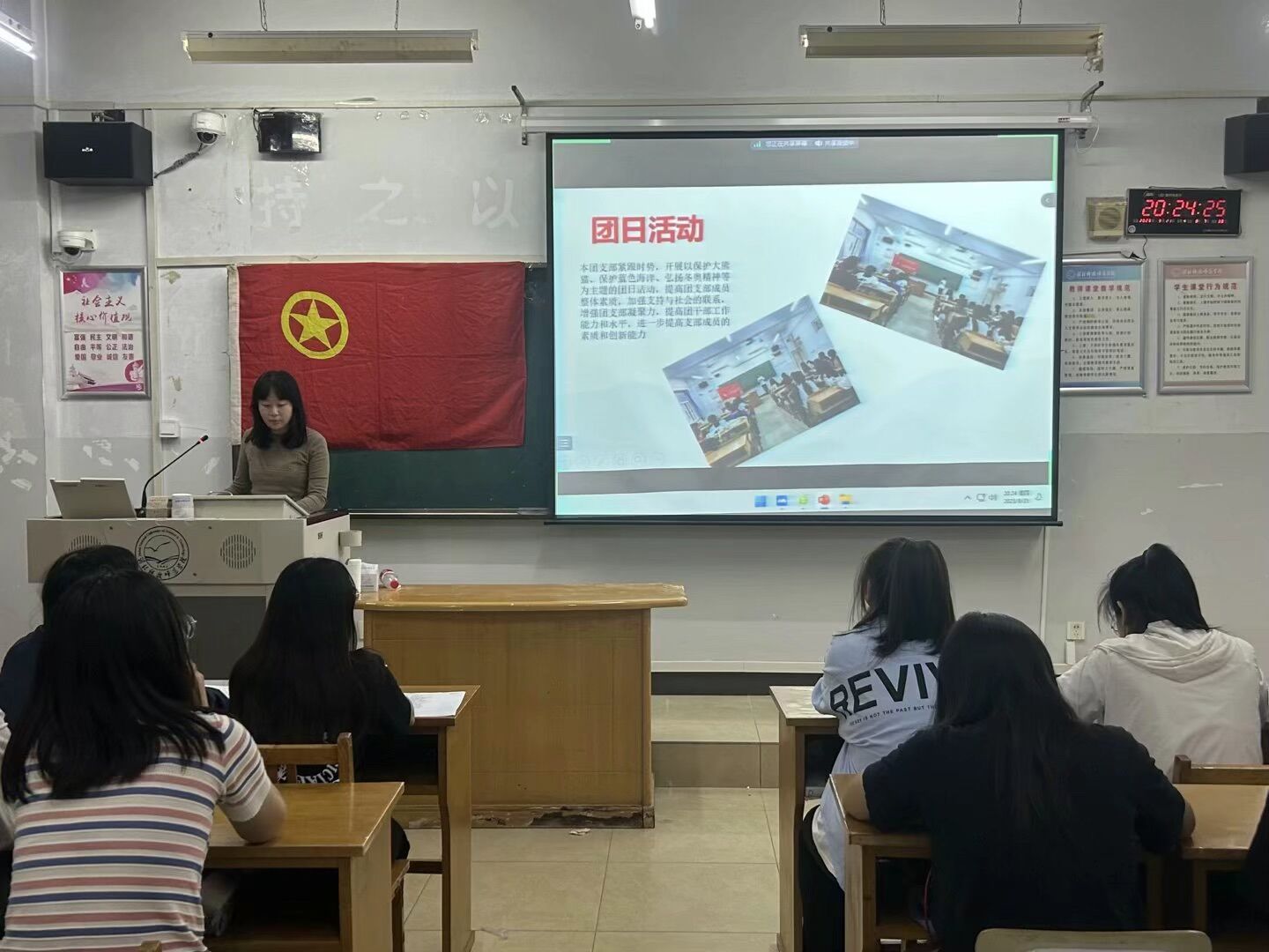 答辩开始前,青年发展部成员组织到场签到、张贴团旗并宣布答辩正式开始。答辩过程中,各团支部结合制作的PPT,围绕着规定动作、自选动作、创建目标、未来展望四个部分展开答辩,向大家展示成果,包括举行学科竞赛、单词打卡、读书会等活动,为23级团支书提供了诸多示例,起到了表率作用。各团支部答辩形式新颖,思路清晰,在短短的三分钟内展现了自己团支部的优势和风采,充分发挥了基层团组织在思想育人等方面的作用。