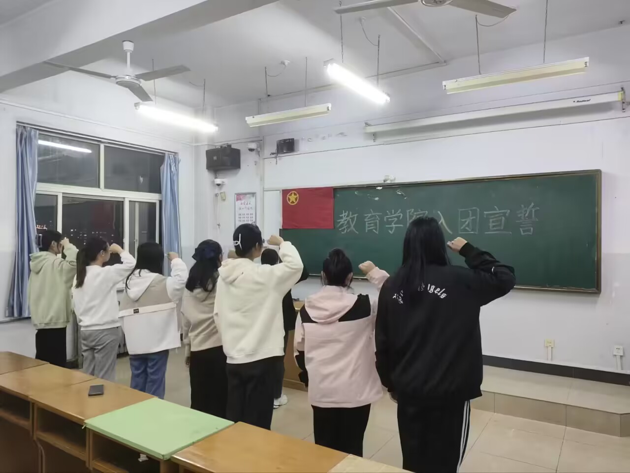 为促进新团员牢记共青团员使命,激发共青团员先进性,增强共青团员的光荣感和责任感,10月27日18:30,雷竞技RAYBET在综合楼419教室举办入团宣誓仪式。团委副书记魏佳苗为领誓人,21级、22级共七位新共青团员到场宣誓。