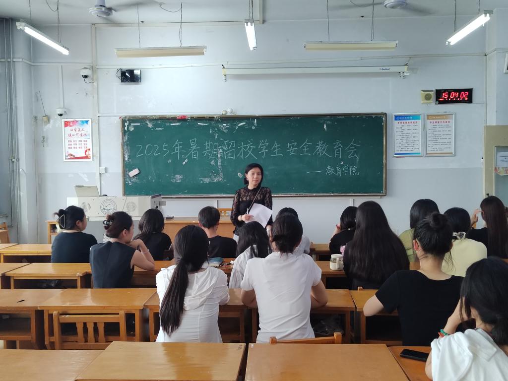 本次教育专题会从安全意识提升、纪律观念强化、留校人员管理三方面展开。会上侯老师进行了安全用电、外出交通、防溺水等方面的安全教育,强调要暑假留校期间要遵守宿舍管理规定及要求,注意人身及财物安全,关注气候变化,防止酷暑、极端天气不要外出,提醒大家做好安全防护措施,并维护好所在区域的校园卫生;侯老师还建议各专业建立留校员工群,要求辅导员公开假期值班信息,以便同学们及时反馈问题。
