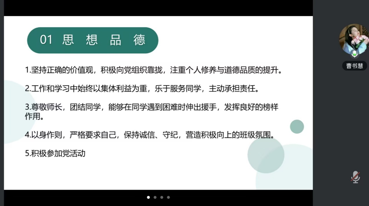 会上,三好员工及优秀员工干部候选人们依次通过视频连线、PPT展示等方式,生动展现了她们在政治思想、学习工作、实践服务、创新创业等方面取得的的优异成果和未来的发展方向。评委老师们认真聆听,针对每位同学的汇报内容进行打分。在评选过程中,候选人们充满自信,态度谦逊认真,充分展现了当代老员工们积极进取,奋发向上,服务社会的精神风貌与优秀品质。