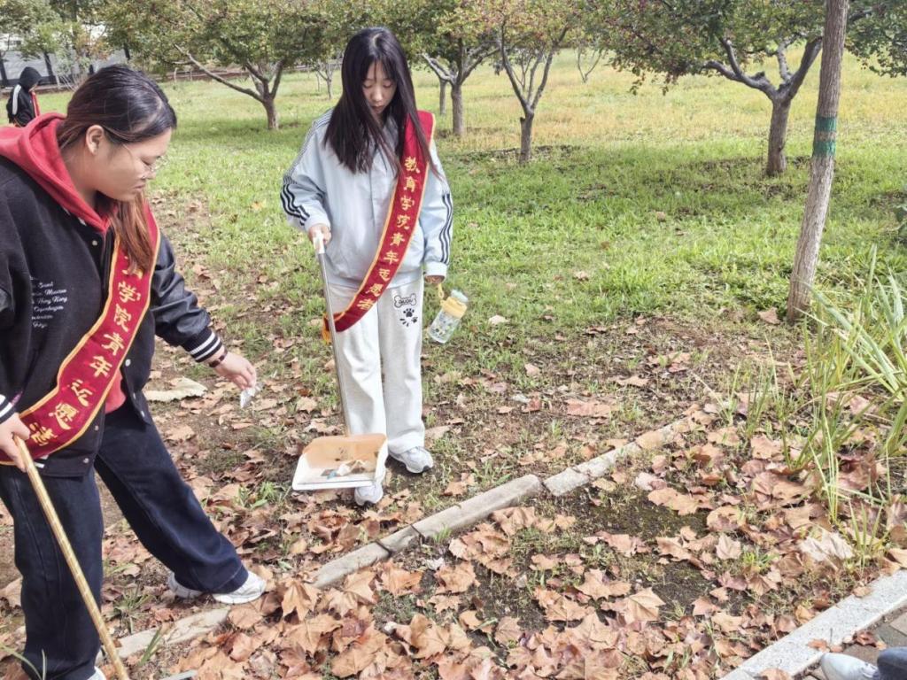 活动当天,志愿者提前抵达指定地点,在负责人的统筹安排下合理分组,领取清扫工具后有序进入小树林开展清洁工作。活动过程中,同学们认真负责,仔细清理角落的枯枝落叶,确保不遗漏任何角落的垃圾,并自觉维护现场秩序。