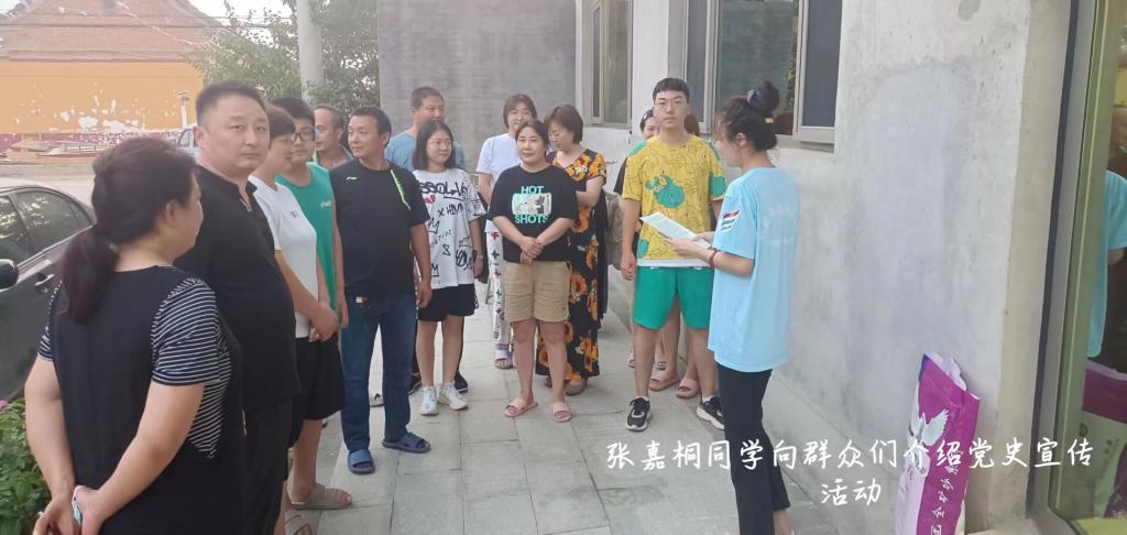 在实践过程中,沧州小队在征得村委会同意后,于村宣传栏分别张贴主题为1919年五四运动、1921年中国共产党成立时的红船、2021年中国共产党成立100周年纪念和喜迎二十大的四幅党史宣传画,并向来往村民详细介绍了每一幅宣传画背后的故事。不少村民在观看学习后,更深一步领悟到中国共产党的领导是党和国家的根本所在、命脉所在,是全国各族人民的利益所系、命运所系。此次的党史宣传得到当地村委会的大力支持,有效地提高了团队党史宣传效果,有助于村民群众从党的百年伟大奋斗历程中汲取继续前进的智慧和力量,凝聚起建设美丽乡村的强大合力。