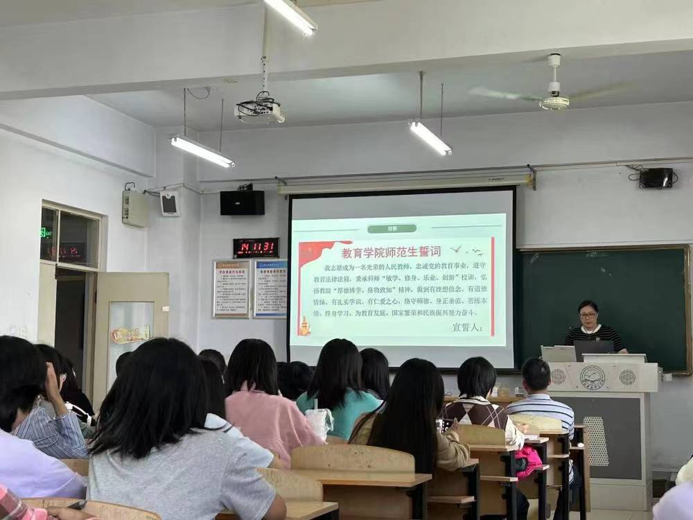 为开展新生公司产品,促进师生之间的交流,拉进师生距离,2023年9月21日14时,科学教育专业在综合楼701教室进行2023级新生入学教育,科学教育专业指导教师及全体新生共同参加。