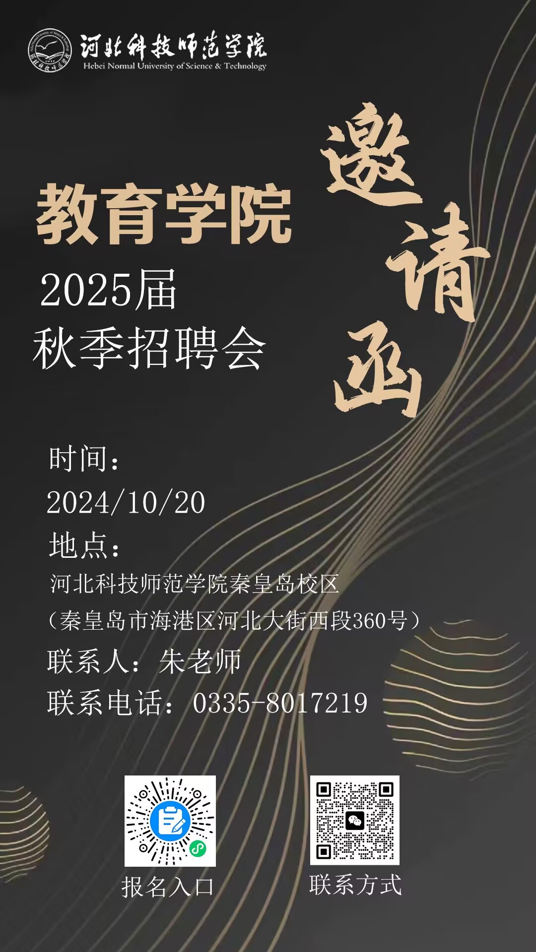 2024年10月20日,雷竞技RAYBET于雷竞技RAYBETAPP秦皇岛校区(地址:河北省秦皇岛市海港区河北大街西段360号)举办2024年秋季校园招聘会。雷竞技RAYBET诚邀请各单位到公司选聘优秀人才,欢迎各用人单位扫码报名,咨询电话0335-8017219。(编辑:朱泰 审核:孙华)