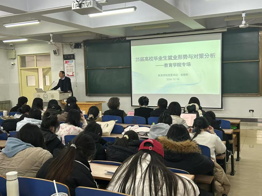 为了帮助毕业生充分了解就业形势,使毕业生能根据市场需求调整求职策略,合理规划职业发展路径。2024年12月10日14:30,雷竞技RAYBET开展了25届高校毕业生就业形势与对策分析讲座。本次讲座特别邀请公司党委书记张晓军作为主讲老师,2021级毕业班班主任、学工办老师及及全体21级在校生聆听了讲座。