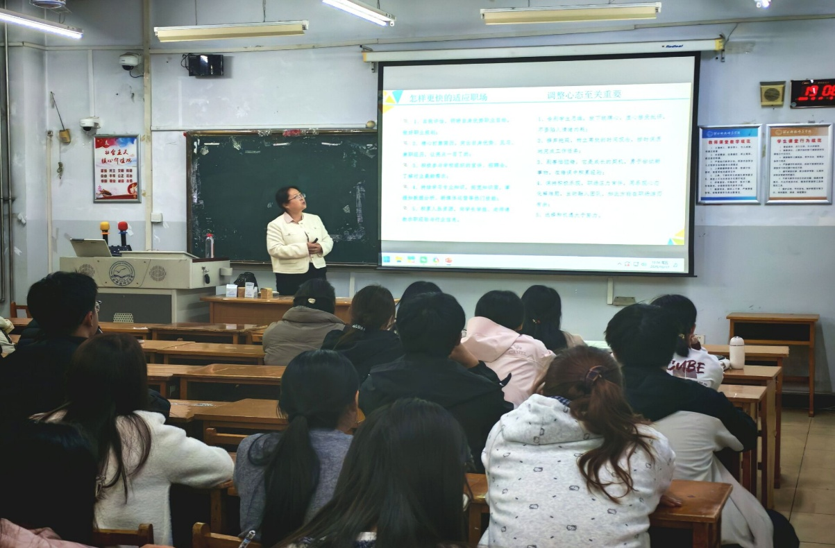 会议伊始,宣讲人对近年的新兴职业和就业发展趋势做出了详细的讲解,并介绍了相关的就业单位和高薪就业岗位,帮助同学们更好的了解了当下的就业情况。随后,宣讲人就怎样更快的适应职场这一问题做出解答,希望同学们能够调整好心态,以积极的态度去看待职场。会议现场氛围热烈,气氛活跃,宣讲人细致的讲解为同学们提供了宝贵的职业规划指导,让同学们对职场有了更加清晰的认识,同时对自己的发展有了更加明确的方向。